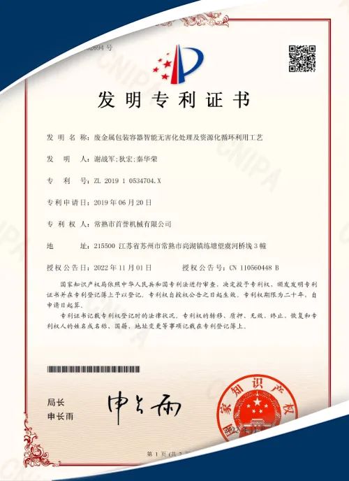 包裝容器無害化資源循環(huán)利用工藝專利證書危廢包裝容器資源化處理系統(tǒng):針對(機(jī)油濾芯、化工桶、涂料桶,機(jī)油壺、金屬包裝容器、塑料包裝容器)等危廢物料,首譽(yù)提供專用的危廢包裝容器資源化處理系統(tǒng),集撕碎、破碎、分離、除渣、分選、清洗等功能于一體,產(chǎn)量達(dá)到800-5000KG/H,安全性高,抗沖擊力強(qiáng)。刀片采用高強(qiáng)度合金鋼制成,擁有良好的耐磨性和強(qiáng)度。